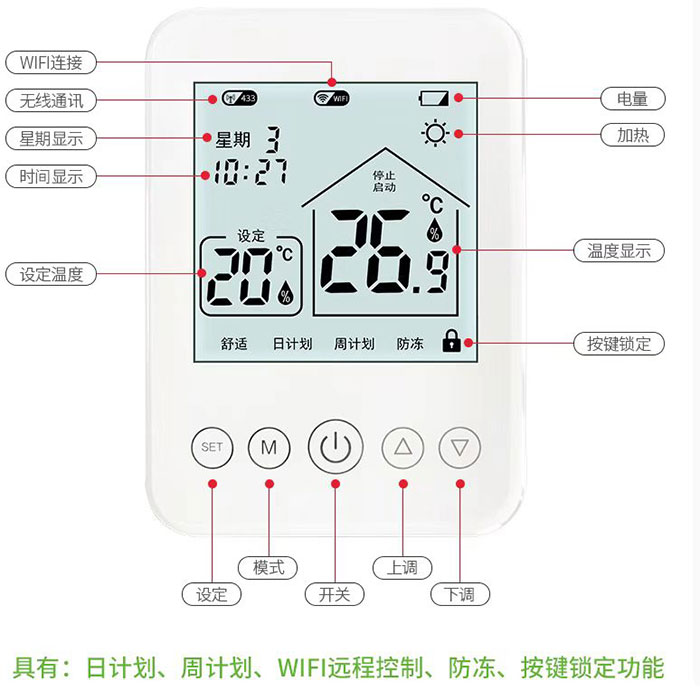 三、WK168手機(jī)WIFI壁掛爐溫控器主要功能介紹: