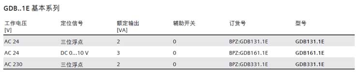 西門子風(fēng)閥執(zhí)行器GDB系列型號(hào)列表: