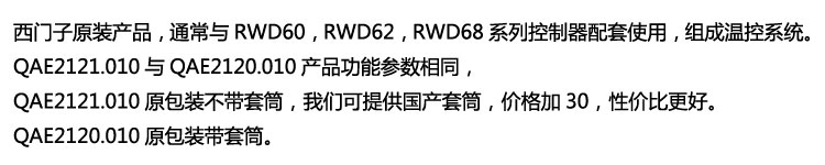 用于測量水管溫度,除QAE2120.010自帶套筒外,其它需要單獨(dú)購買。