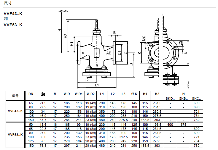 DN65-DN150適用于VVF43..K,DN50-DN150適用于VVF53..K