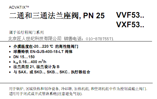 DN25:兩通閥VVF53.25-10,三通閥VXF53.25-10