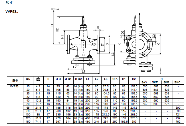 DN150:兩通閥VVF53.150-400,三通閥VXF53.150-400