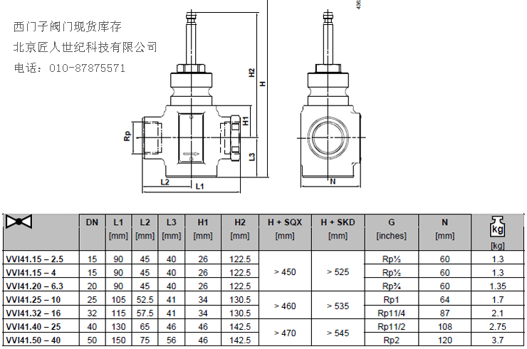西門子兩通閥門VVI41,內(nèi)螺紋連接,PN16