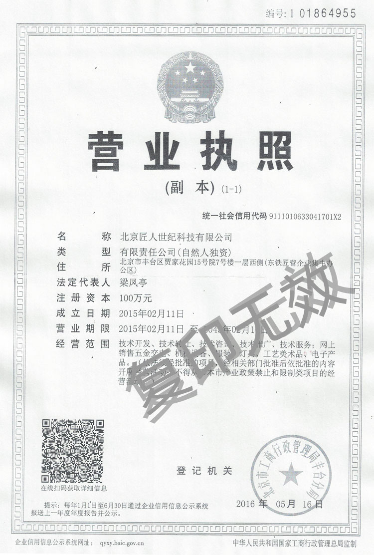 ABOUT 北京匠人世紀(jì)科技有限公司營業(yè)執(zhí)照